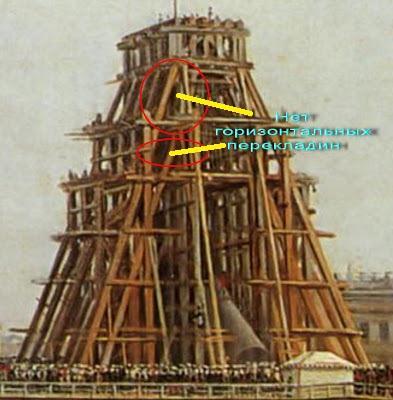 Металлическая опора для "Хан-Шатыр", о которой упоминается в начале статье не имеет МАССЫ в 1500 тон. Собсно о массе и не идет речь в ролике. Инженер говорит о горизонтальной нагрузке в момент отрыва от земли. Но вся "подлость" колонны, а точнее такой геометрической фигуры как цилиндр в том, что в любой момент пути, вся его масса приходится на всего одно бревно. А при условии что, цилиндр имеет уступы (а их было как минимум два, уже по реальному факту), то нагрузка не распределена по во всей длине бревна, а приходиться на очень малый участок под этими уступами. И тут вырисовывается просто фантастическая нагрузка на площадь, которая измеряется квадратными сантиметрами ;)