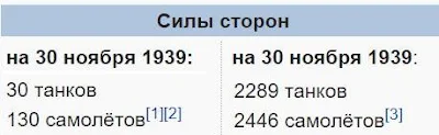 Это при том, что у финнов практически не было танков и самолетов, а у русских 2200 танков и 2450 самолетов! (У финнов 30 и 130 соответственно, в 75 раз меньше танков и в 19 раз самолетов!!!).